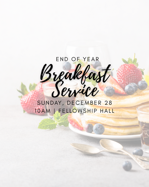 Celebrate 2025 with us on Sunday, December 28, at our End of Year Breakfast Service! Breakfast will begin at 9:30, with a worship service following.